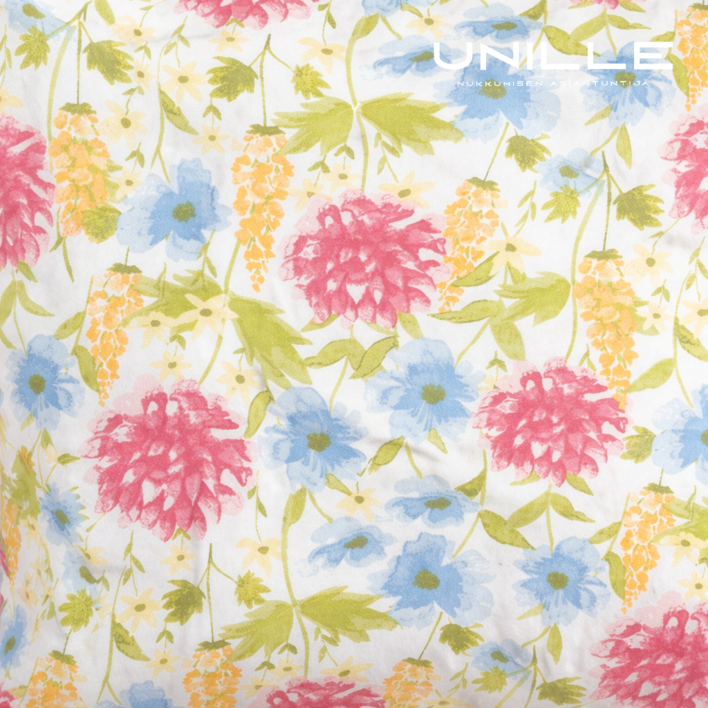 Tyylikäs Askum satiinipussilakanasetti tuo makuuhuoneeseen raikasta eleganssia ja kesäistä keveyttä. Sen eloisa kukkakuosi yhdistettynä vaaleaan pohjaan luo harmonisen ja ylellisen kokonaisuuden.