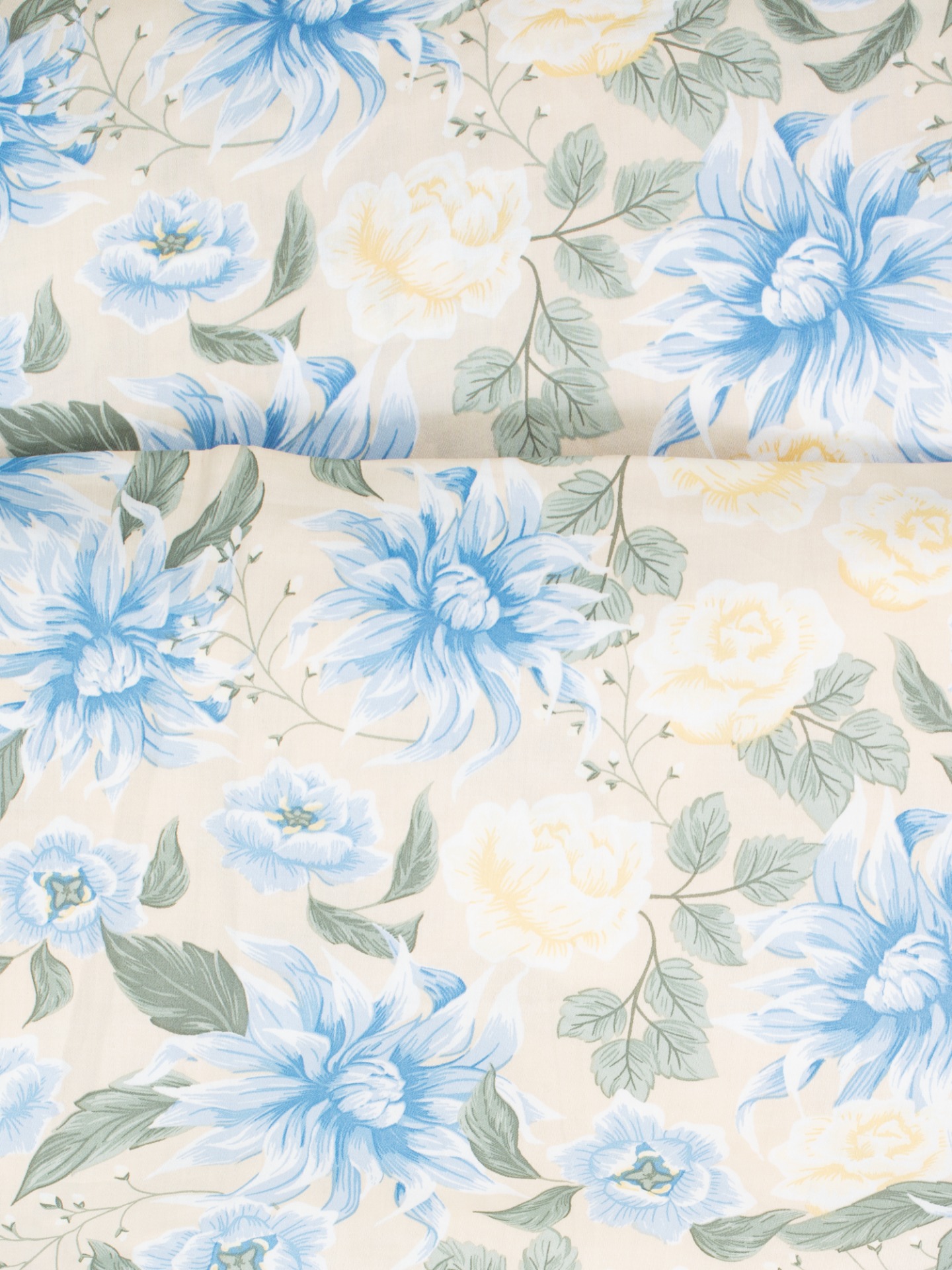 Väri: kerman vaalea pohja, sinisen ja keltaisen sävyiset kukat