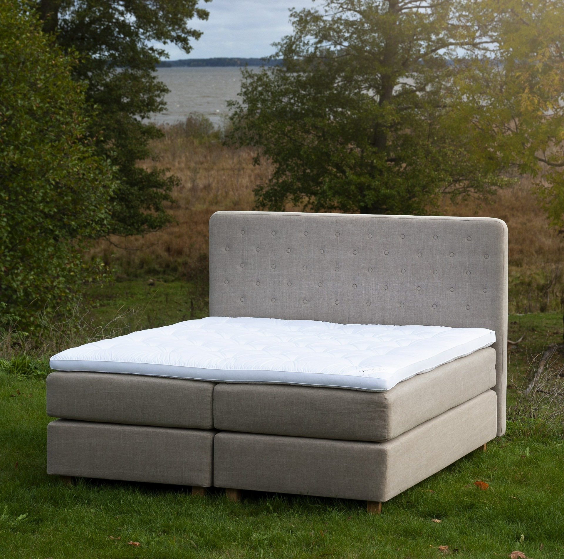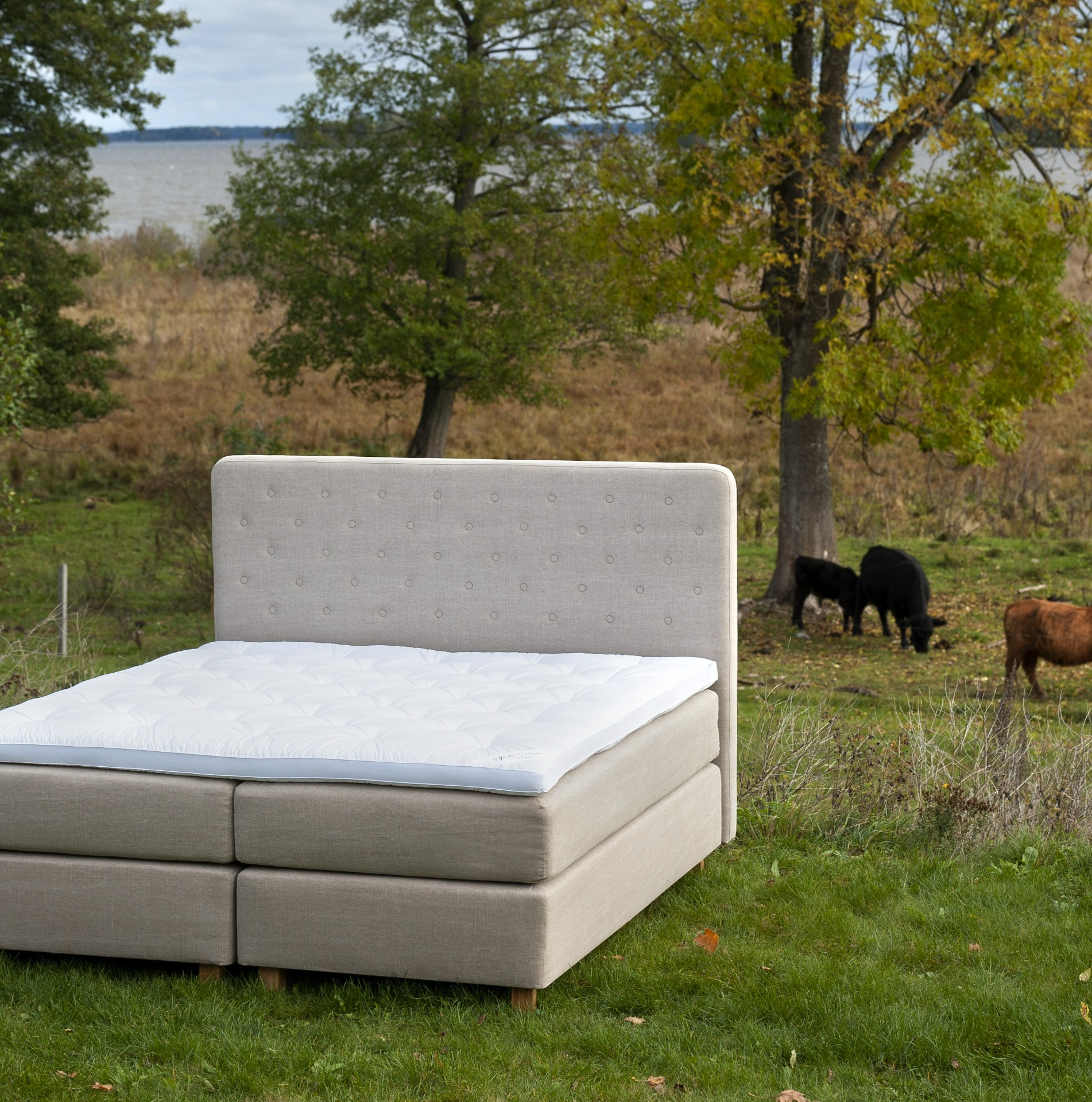 Luonnonmateriaalit tukevat ilmankiertoa ja raikkautta – kerroksellinen jousitus rakentaa tuen.
