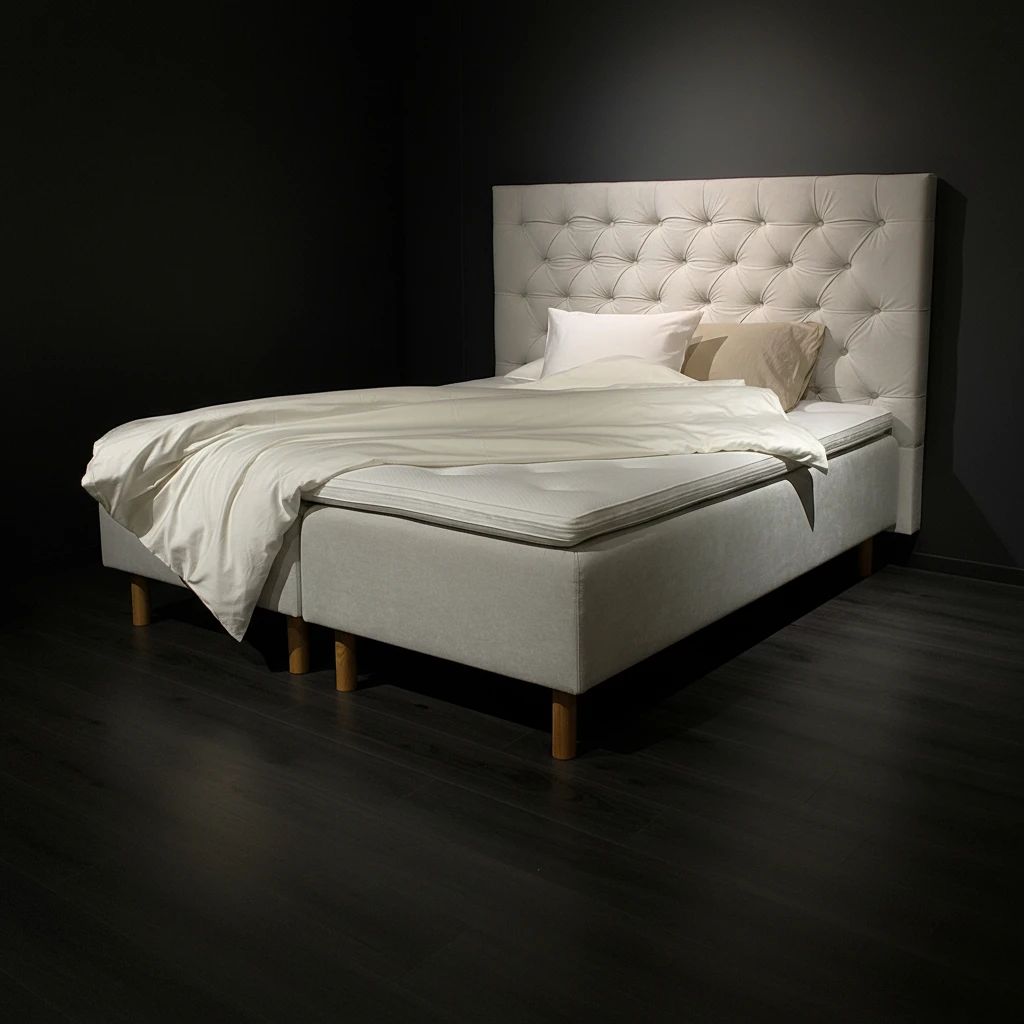 Valmiit paketit: hinta sisältää jenkkisängyn, sijauspatjan sekä jalkasarjan — valitse vain jäykkyys ja verhoilu.
